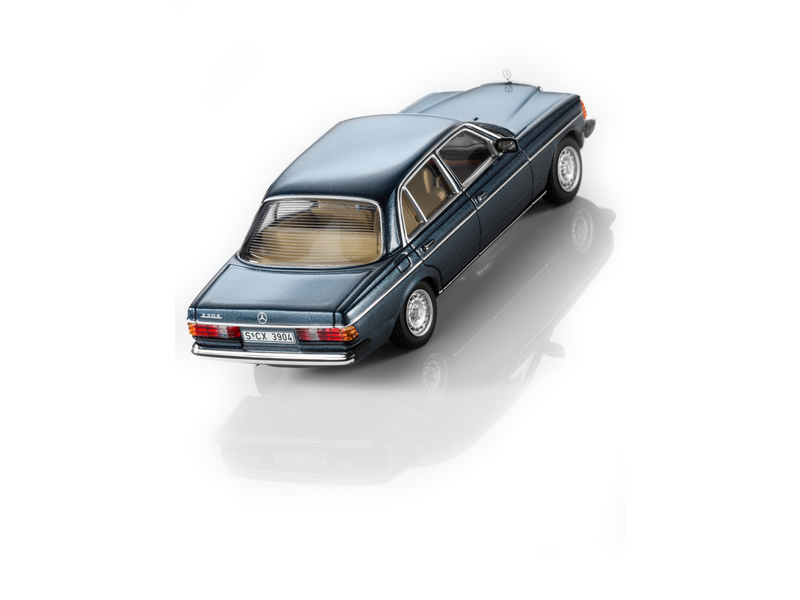 Mercedes-Benz 230 E, W123, лапис синьо. Лят метал. Мащаб 1:43. Оригинални цветове на боята. Точно възпроизвеждане. Висококачествен печат на интериора. В подаръчна кутия, върху печатна основа. От Minichamps за Mercedes-Benz.