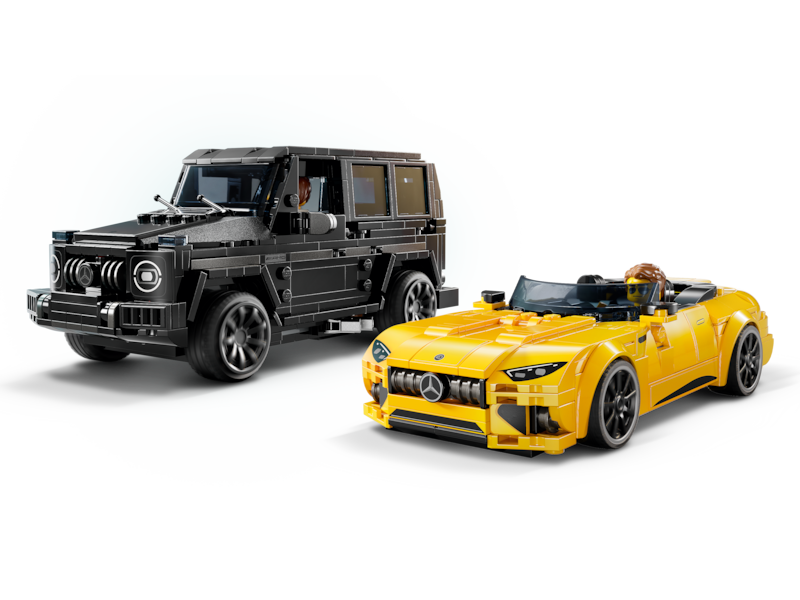 С включено ДДСКой ще спечели състезанието тук – черният Mercedes-AMG G 63 или жълтият Mercedes-AMG SL 63? Този комплект от 2 части ще зарадва малките фенове на автомобили на 10 и повече години, но ще ускори пулса и на възрастните колекционери. Двата модела, с автентичния си дизайн, обещават часове забавление при конструиране с Lego® с общо 808 отделни части. И двата автомобила, изработени от LEGO® строителни блокчета, вдъхновяват с вниманието си към детайла, което се отразява не само в интериора, но и в детайли като предна решетка, преден капак и джанти. Две минифигури на шофьори в екипировката на Mercedes-AMG допълват комплекта и осигуряват перфектно забавление по време на игра. Колите играчки се доставят в LEGO® опаковка, която включва инструкции за конструиране.