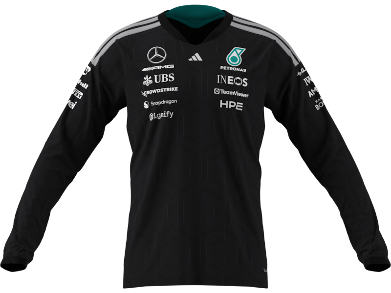 С включено ДДСThe perfect blend of style and performance: The Mercedes-AMG PETRONAS Formula One driver long sleeve shirt for the 2026 season impresses across the board and ensures fast and efficient moisture management thanks to CLIMACOOL materials – even when the wearer is giving it their all. The black long sleeve shirt provides an exciting, clean and stylised look. A stripe detail on the shoulder and team and partner logos on the front, back and sleeves provide clever
