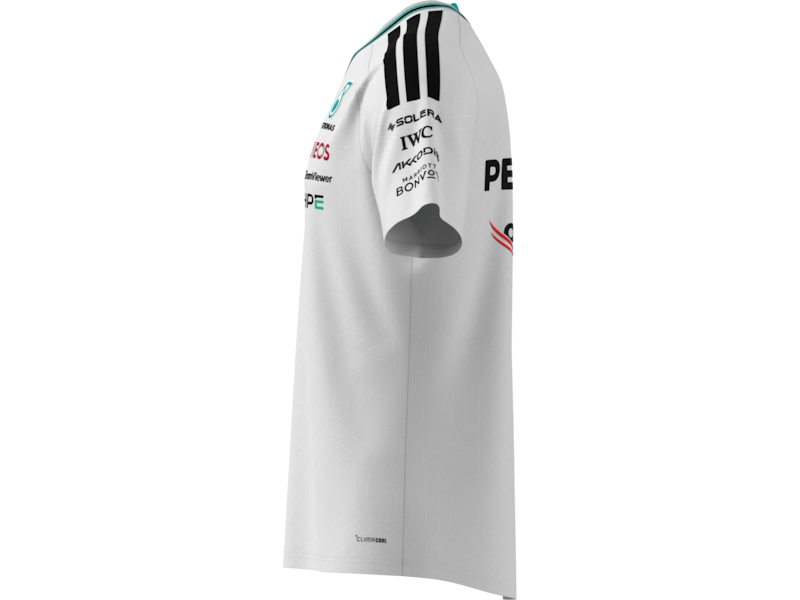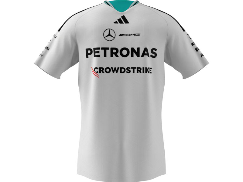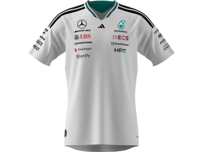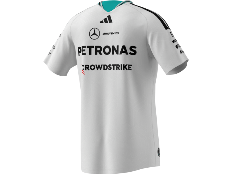 С включено ДДСSimply authentic and a precise reproduction of the drivers' apparel: The Mercedes-AMG PETRONAS Formula One 2026 driver Authentic T-Shirt combines uncompromising performance with clean, stylish design. Stripe details on the neck and shoulder provide dynamic accents and give the T-shirt a modern look. The design is rounded off with team and partner logos on the front, back and sleeves.