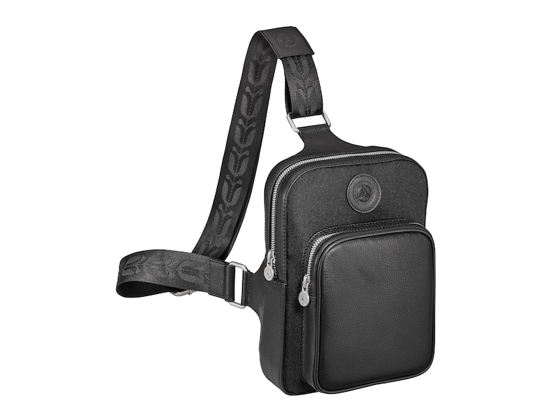 С включено ДДСThe shoulder bag made from recycled polyamide is a versatile companion that allows you to carry your most important things with you at all times. The bag is equipped with a large main compartment with a separate zip pocket. There is also a small insert pocket for a tracking tag up to a maximum size of 40 mm x 40 mm. A detachable carrying strap, which can be individually adjusted in length, ensures a comfortable fit. The silver-coloured zips and the 3D star zipper contrast stylishly with the black nylon fabric. One special detail is the striking branding that lends the shoulder bag its exclusive touch. Both the logo badge and other leather applications on the shoulder bag are made of the same leather used for the seats and appointments of the exquisite vehicle interior of the Mercedes-Benz S-Class.