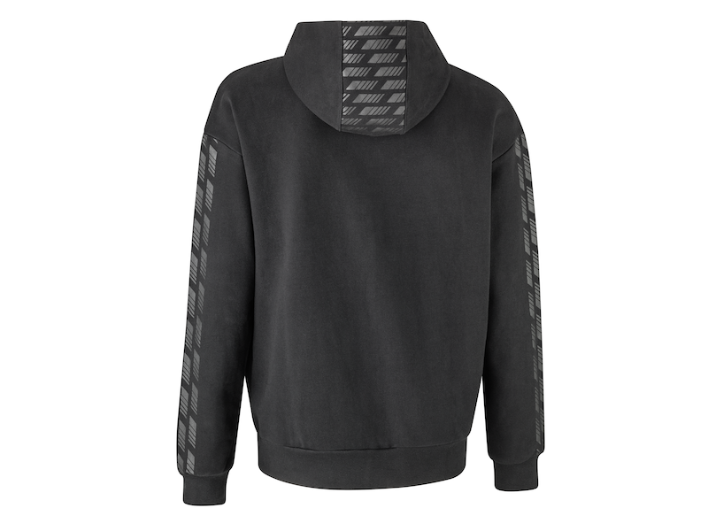 С включено ДДСSporty and comfortable: the black sweatshirt hoodie with its loose fit lets you instantly create a modern look for leisure where these small details make all the difference. The design includes a tonal printed AMG diamond pattern on the sleeve and hood, while the red neck band with the woven white AMG logo catches the eye. The tonal AMG logo print on the left on the chest and on the cord add the perfect finishing touch to the casual look.