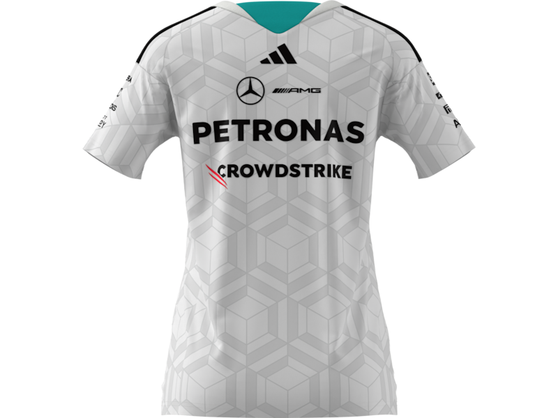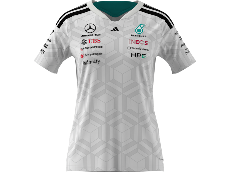 С включено ДДСA clean, stylised look, inspired by the Mercedes-AMG PETRONAS Formula One Team: the women's shirt shows at first glance who is a passionate racing fan. The stripe detail on the shoulder accentuates the elegant T-shirt, while the team and partner logos on the front and back and on the sleeves finish off the shirt design. A perfect blend of style and performance!